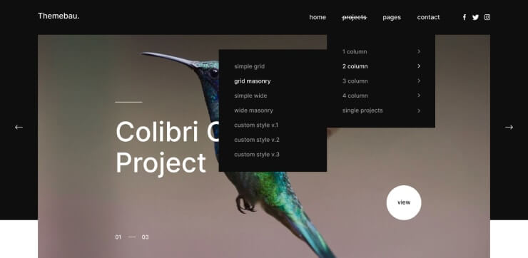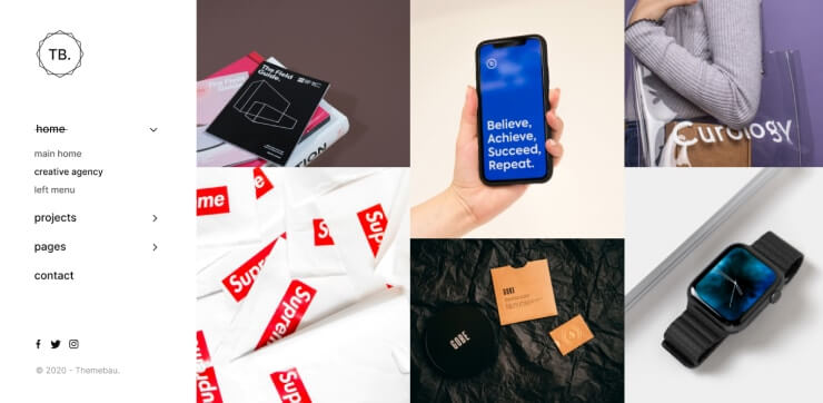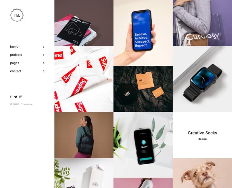 Themebau has 1/2/3/4 columns layouts to showcase your work and collections. Choose between the 19 types of layouts to create your portfolio.